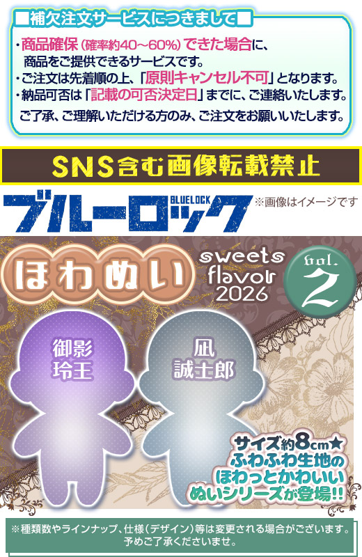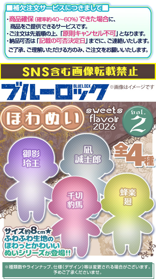 [ 商品説明 ] ★TVアニメ「ブルーロック」 ほわぬい -sweets flavor 2026- vol.2