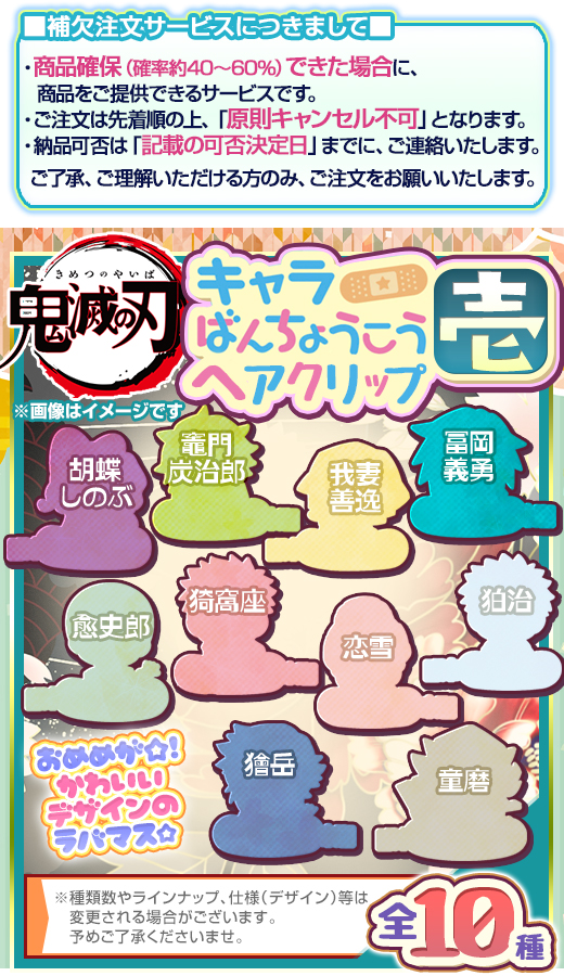 [ 商品説明 ] ☆【ガチャ】 鬼滅の刃 キャラばんちょうこうヘアクリップ壱